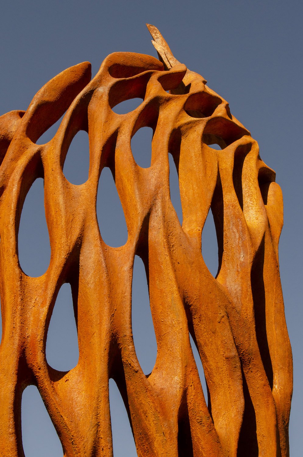 Spirit Fire reflects the imposing nature of the swirling dynamic of fire and how its devastation unlocks the seeds of renewal and regeneration. The direction and 3D form echo the impermanent motion of fire with the positive and the negative spaces speak of the different intensities of flames. I want this sculpture to be eminently relatable and to clearly signpost the Koolinup Emergency Services Centre.